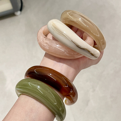 Joyería de diseñador Vintage para mujer, brazalete geométrico de resina de estilo bohemio grueso, pulsera de acrílico Irregular de ámbar de mármol para regalo