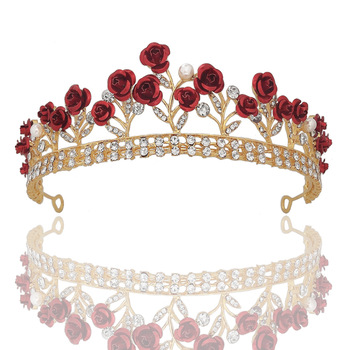 Oro nuevo rosa roja flor cristal resina joyería al por mayor mujeres corona nupcial